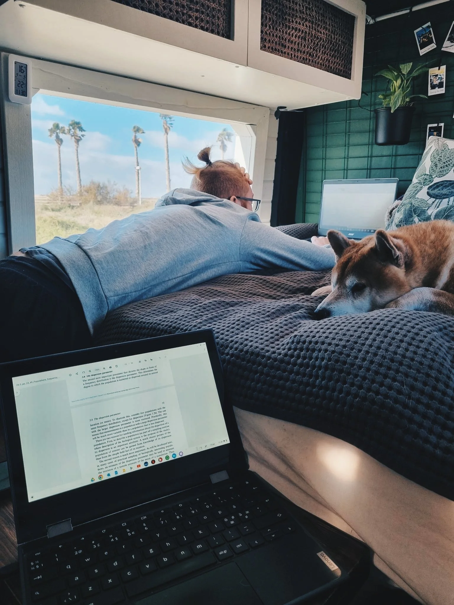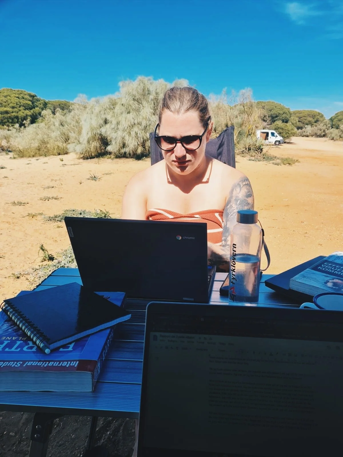 Tiden spenderas med att varva studier i solen och härligt häng med andra vanlifers som de mött längst vägen.